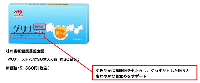 アミノ酸を研究して100年 味の素 から睡眠のためのサプリメントで日本初の機能性表示食品 グリナ 1 ぐっすり深く眠りたい人に 表示 アミノ酸 して