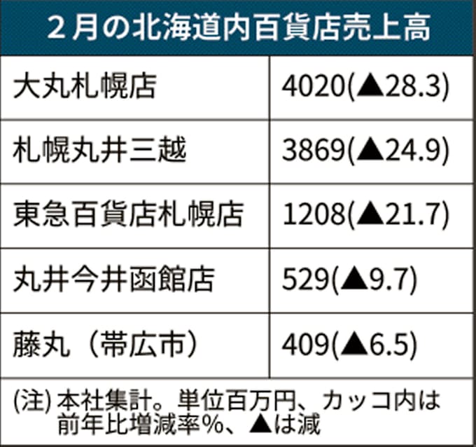新型コロナ 北海道の百貨店売上高24 7 減 2月はコロナの影響大きく 日本経済新聞