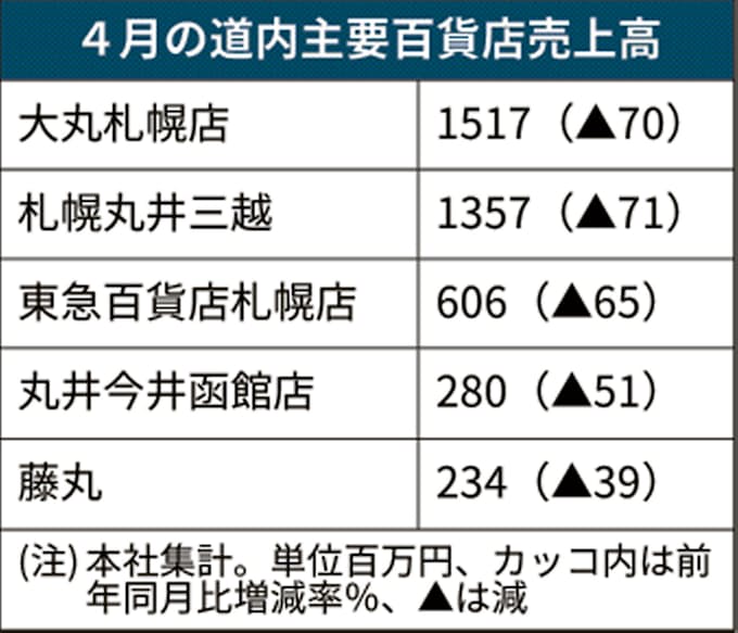 新型コロナ 北海道内の百貨店4月売上高7割減 臨時休業響く 日本経済新聞