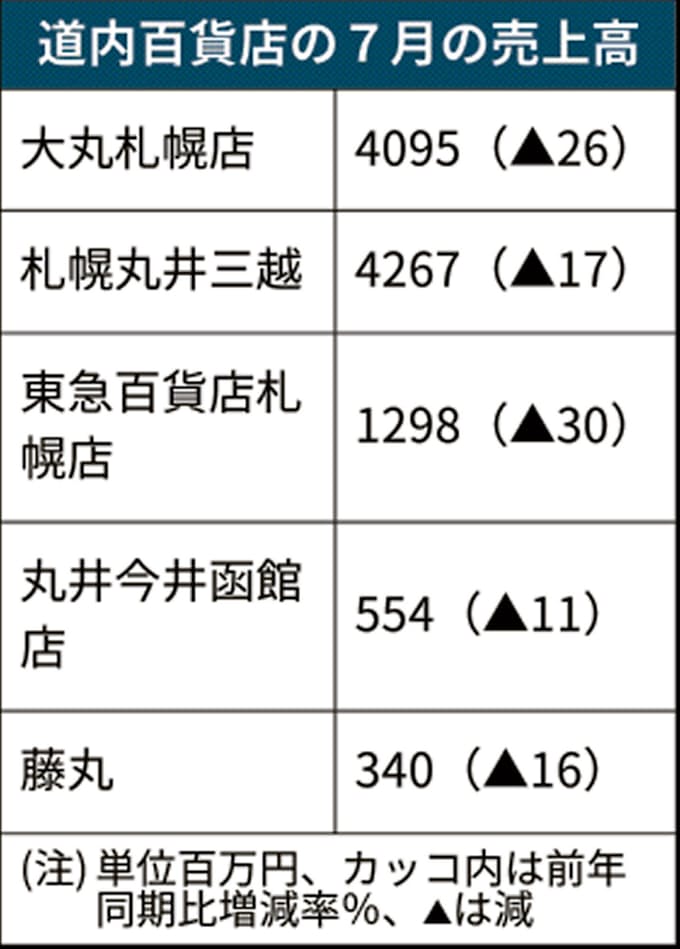 新型コロナ 北海道内の百貨店売上高22 減 7月も訪日客なく 日本経済新聞