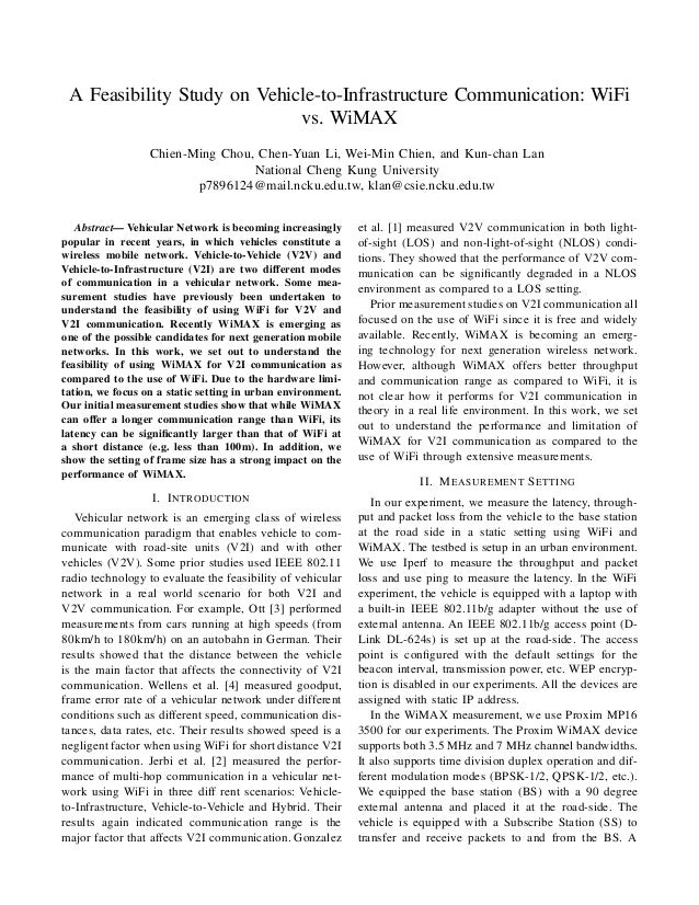 A Feasibility Study On Vehicle To Infrastructure Communication Wi Fi